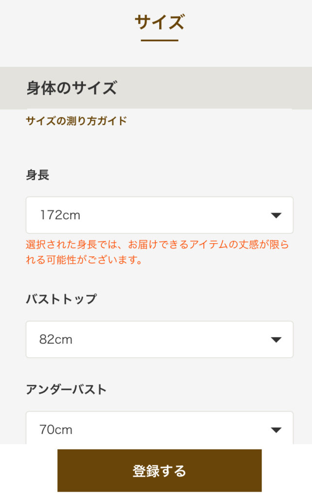これは自分のサイズも正確に登録しないと、残念なことになっちゃいます…😭